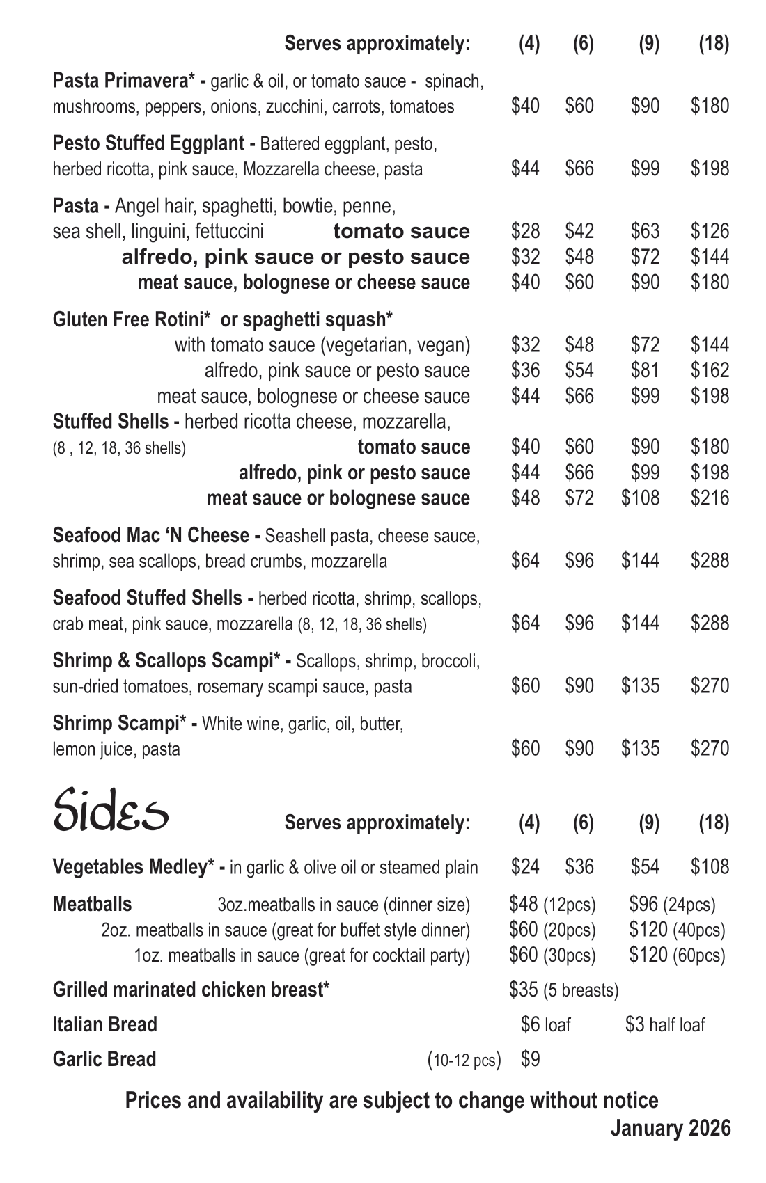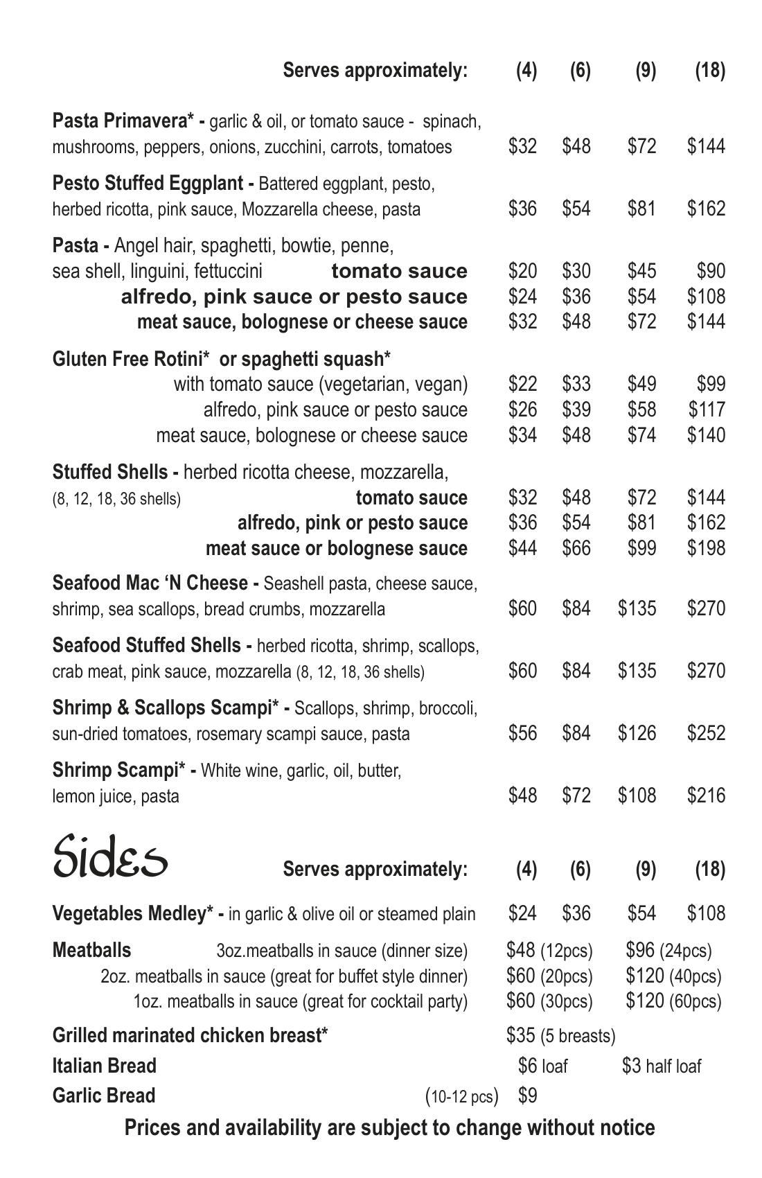 ! PRICES ARE SUBJECT TO CHANGE !